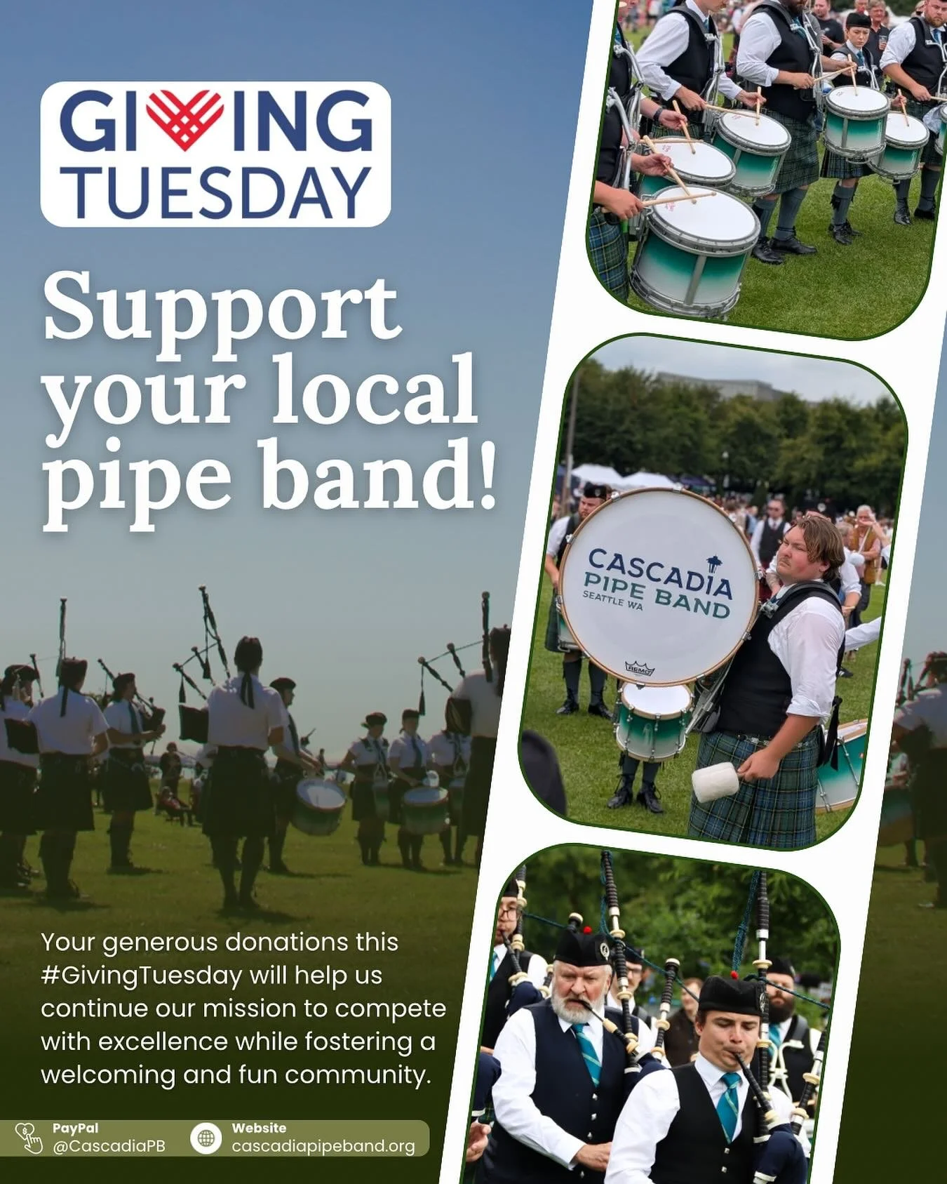 Cascadia Pipe Band is Washington State’s only grade 2 competitive bagpipe band located in Seattle, attracting talent from the PNW and beyond. Read more about our story here.