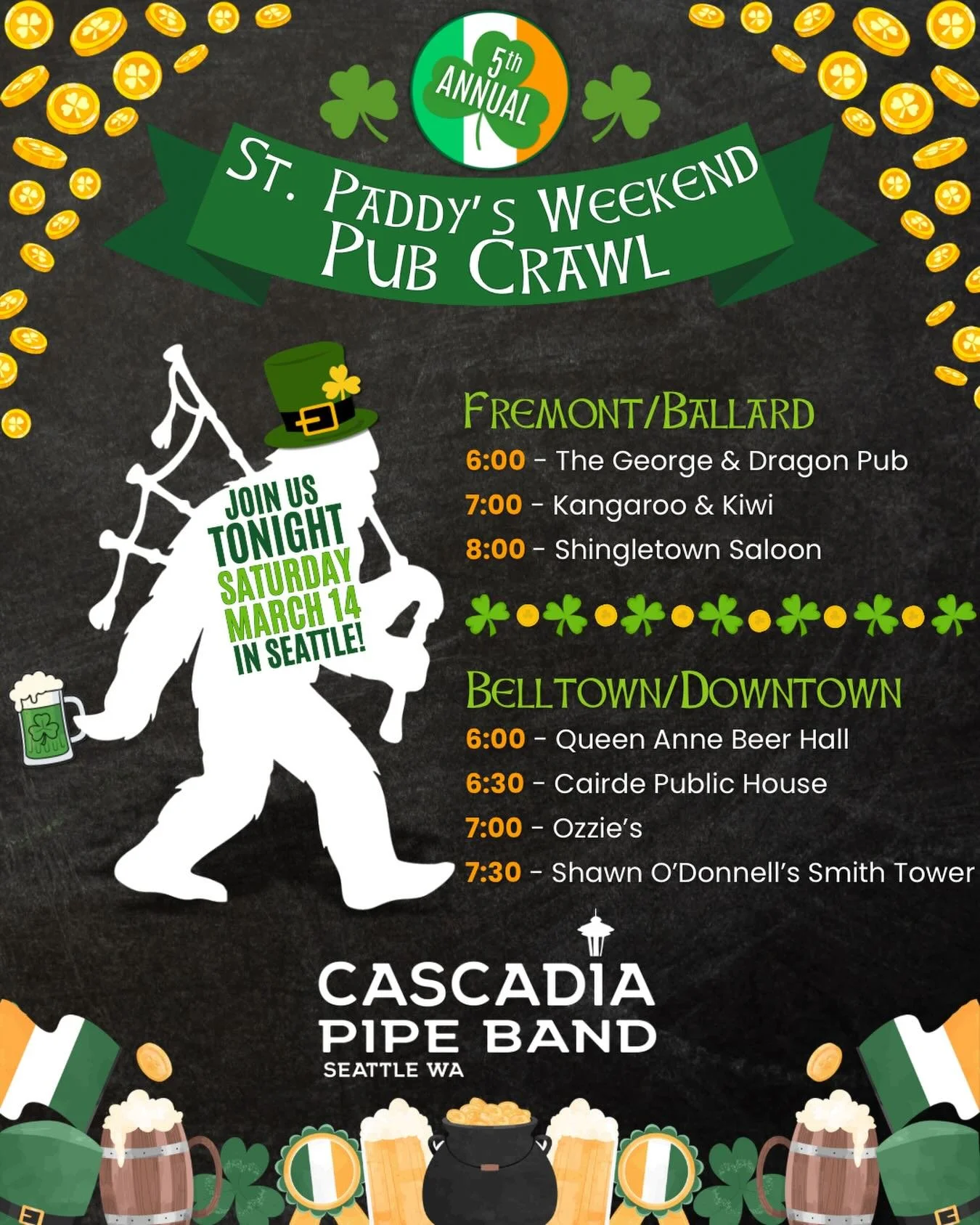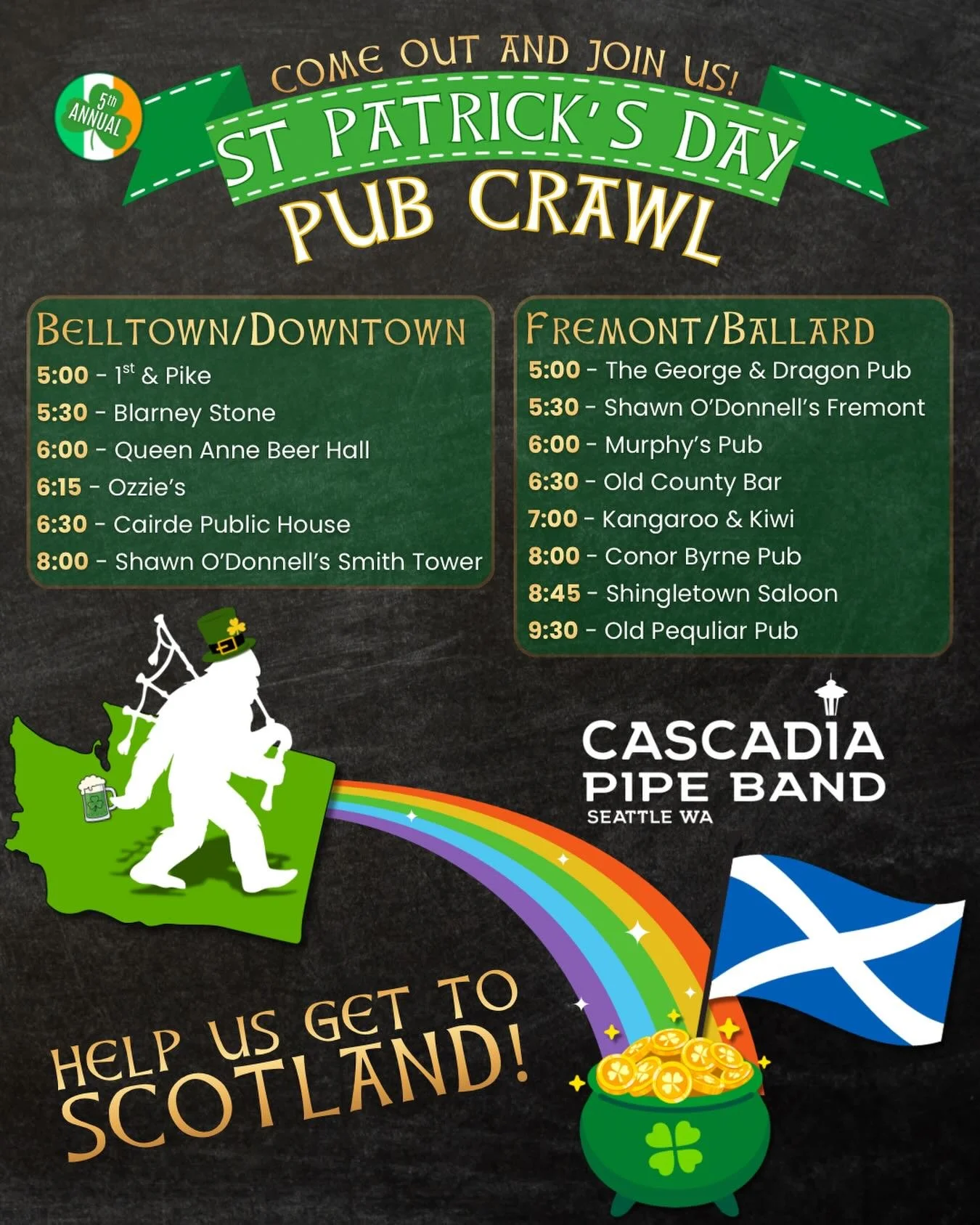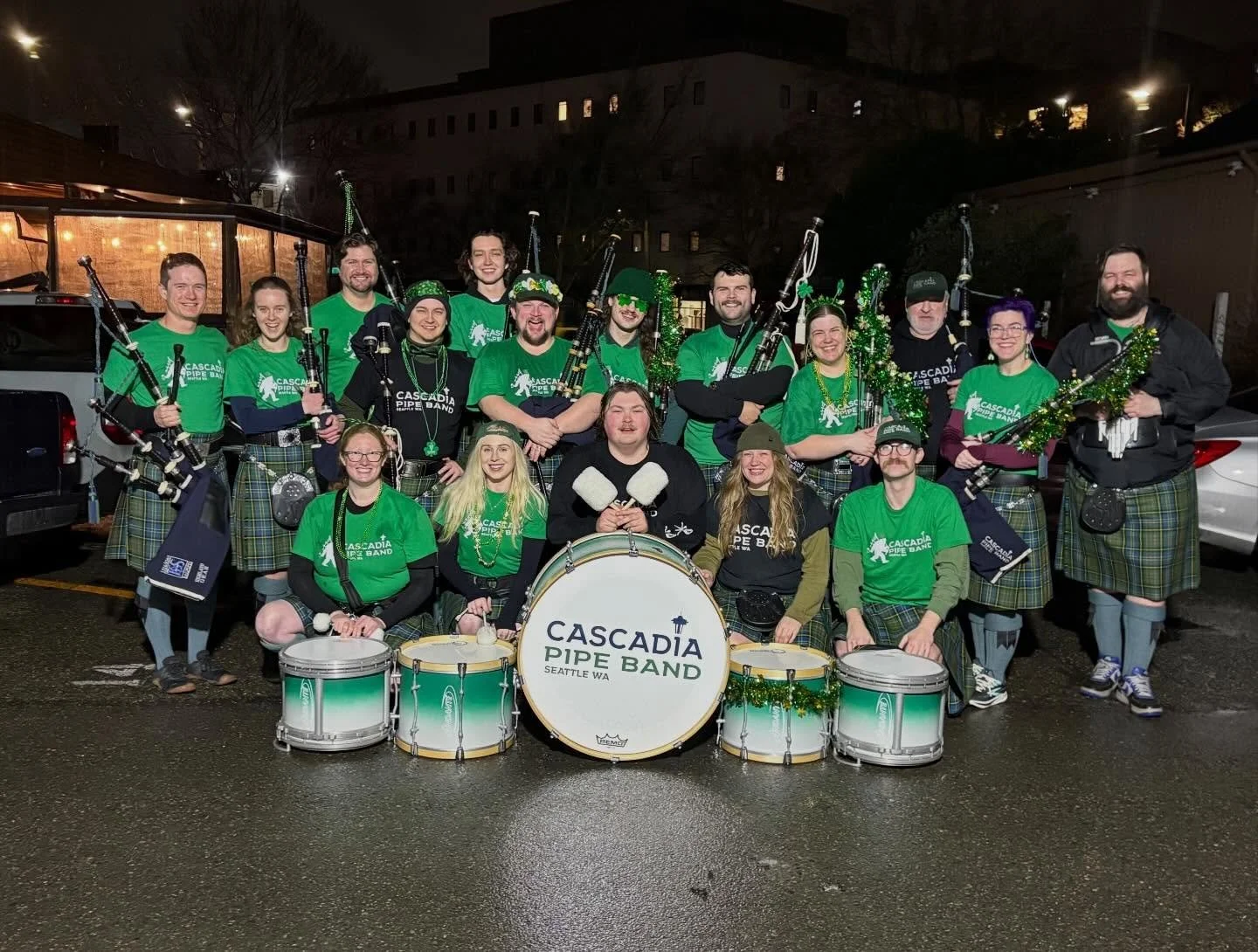 Cascadia Pipe Band is Washington State’s only grade 2 competitive bagpipe band located in Seattle, attracting talent from the PNW and beyond. Read more about our story here.